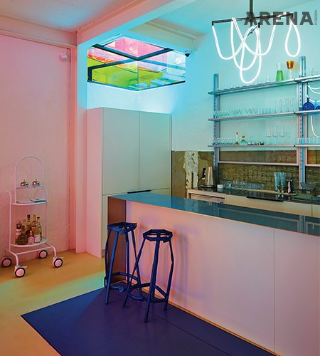 1968년에 지어져 오래되고 자그마한 주택 단지에서 다채로운 색감을 품은 디자인 바를 발견했다. 이름은 ‘꽃술’. 오랜 세월 잡지사에서 미술 디자인을 취재한 이미혜가 주인장이다. 꽃술은 공간을 구성하는 모든 요소에 디자인적 가치를 부여했다. 의자와 테이블, 조명 등은 모두 한국 디자이너들이 만든 작품이다. “꽃술은 쇼룸도 갤러리도 아니에요. 보통의 갤러리나 쇼룸에서는 흰 장갑을 끼고 가구를 만지잖아요. 꽃술에서는 술 한잔 마시면서 디자인 소품들을 직접 만져보고 사용해볼 수 있어요.” 전통술과 전통차를 마실 수 있으며, 옥상에서는 손님이 참여할 수 있는 다양한 클래스도 연다.