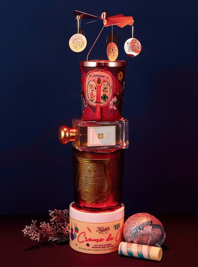 (위부터) 행운을 상징하는 5종의 동물 마스코트 참 장식이 빙글빙글 돌아가는 캔들용 카루셀 8만5천원·코끼리 일러스트가 그려진 캔들 플로라 포르투나 190g 가격미정(면세점 한정 판매) 모두 딥티크, 싱그러운 오렌지와 만다린, 샌들우드의 향을 조합한 크리스마스 시그너처 향 오렌지 비터스 코롱 30mL 9만6천원 조 말론 런던, 겨울밤에 어울리는 앰버 베이스에 캐시미어 우드 향의 후포 캔들 270g 16만5천원 씨흐 트루동, 핀란드 출신 일러스트 작가 야니네 레웰이 근사한 연말 풍경을 그려 넣은 키엘의 베스트셀러. 크렘 드 꼬르 휩트 바디 버터 홀리데이 리미티드 에디션 226g 5만9천원대·레몬버터 립밤 홀리데이 리미티드 에디션 4g 2만5천원대 모두 키엘, 사과 주스와 네롤리 오일 성분을 함유한 보디 솝 스노우 애플 110g 2만원 러쉬 제품.