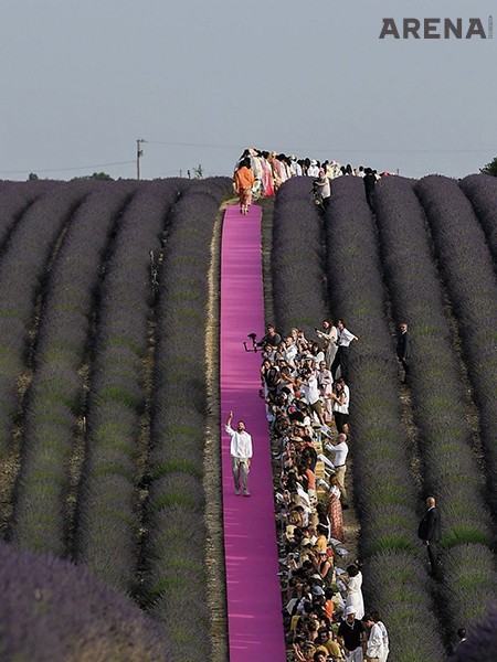 그의 취향은 정말 지독하리만큼 서정적이고 코끝 찡한 낭만으로 넘실댄다. 자크뮈스는 데뷔 10주년을 기념하기 위해 엽서처럼 보이는 장소를 원했다. 그리고 이 장면이 데이비드 호크니의 그림, 혹은 크리스토의 현대 미술처럼 보이길 바랐다고. 자크뮈스의 고향인 프랑스 남부 프로방스 지역, 라벤더로 채워진 향긋한 언덕. 이번 컬렉션의 주제이기도 한 ‘Le Coup de Soleil(내리쬐는 태양)’을 고스란히 조명 삼아, 라벤더 언덕 이맛자락 넘어 움푹 파인 작은 마을까지 핑크빛 런웨이가 리본처럼 길게 늘어졌다. 그의 바람대로 딱 그렇게, 한 장의 엽서처럼 간결하고 우아한 서사가 가득한 장면.
