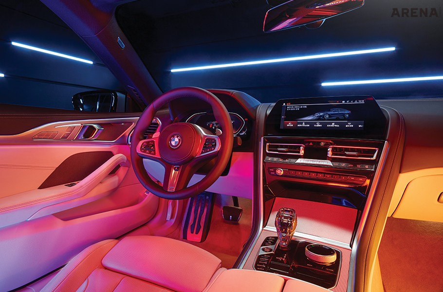 날렵함과 단단함, 품격과 야성미, ‘뉴 8시리즈 그란 쿠페’는 그 사이 어디쯤 교묘하게 자리 한다. 다시 말해 자극과 멋, 안락함과 편리함까지 동시에 충족시킨다. 일례로 휠베이스 3,023mm에서 비롯된 실내에는 여유가 가득하다. 쿠페 모델의 단점으로 지적되는 2열 공간의 헤드룸과 레그룸까지 넉넉하게 뽑아냈다. 이 차의 정체성을 드러내듯 뒷좌석은 2인석이다. 반면 고급스러운 인테리어는 역시 기함답다. BMW 럭셔리 라인에서만 만나볼 수 있는 크리스털 소재의 글라스 인테리어를 적용했다. 특히 기어노브에 보석처럼 박힌 크리스털은 아름답다 못해 황홀하기까지 하다. 운전의 편리함을 배가할 편의 사양과 운전자 보조 시스템도 자랑거리. ‘리모트 소프트웨어 업그레이드(RSU)’ 기능이 탑재되어, 서비스센터 방문 없이 척척 소프트웨어를 자동 업데이트하고, ‘후진 어시스턴트’ 기능은 막다른 골목에서 최대 50m까지 자동으로 후진해 빠져나갈 수 있는 신세계를 선보인다. BMW 인텔리전트 개인비서 기능과 실시간 교통정보 서비스 기능이 탑재된 BMW 라이브 콕핏 프로페셔널까지 꼼꼼하게 챙겼다.