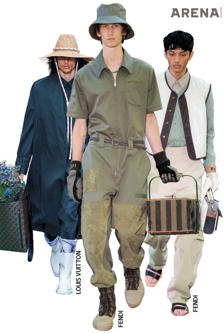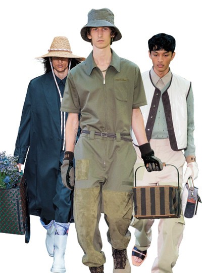 2020 S/S 시즌엔 유니폼에서 힌트를 얻은 룩도 유난히 많다. 밀라노 빌라 레알레 정원에서 쇼를 연 펜디는 카고 팬츠와 점프수트, 버킷 해트와 가드닝 글러브, 과일 바구니같이 생긴 가방을 컬렉션 곳곳에 배치해 가드닝에 대한 애정을 드러냈고, 루이 비통 역시 챙이 넓은 밀짚모자와 장화, 갖가지 꽃을 담은 토트백 등 정원사를 연상시키는 세부를 적극 활용했다. 한편 선원에게 영감을 받은 디자이너들도 꽤 있다. 세일러 칼라로 포인트를 준 랑방과 로에베, 검은색 가죽으로 세일러 수트를 만든 메종 마르지엘라, 컬렉션 전체를 머린 룩으로 채운 앤 드뮐미스터…. 바다에서 태어난, 바다를 위해 만들어진 옷들은 여름과 무척이나 잘 어울린다.