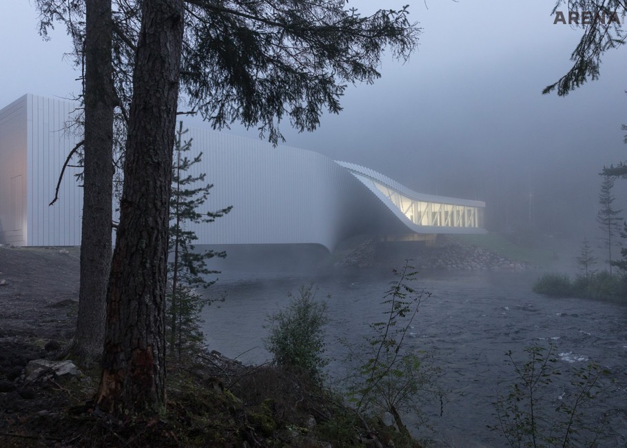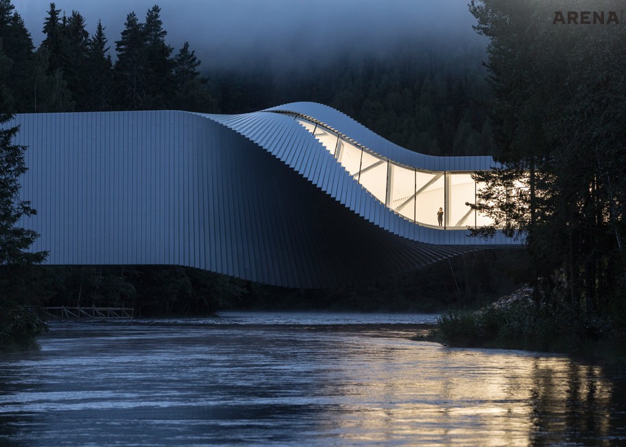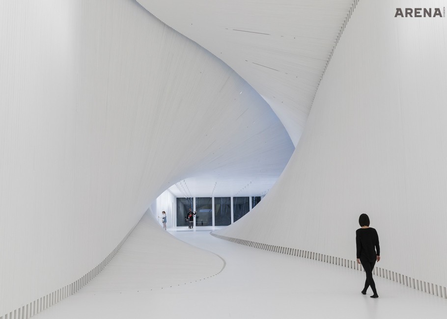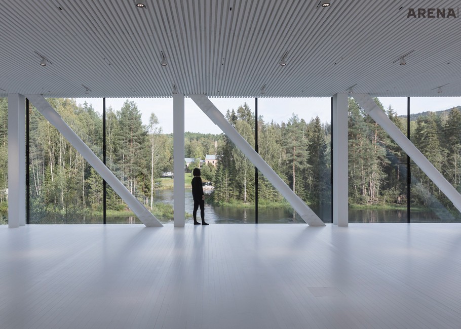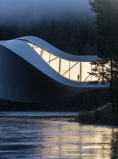 란셀바강의 양쪽으로는 무한한 수풀이 이어진다. 수풀을 따라 걷다 보면 강 한가운데에 다리 역할을 하는 거대한 구조물이 놓여 있다. 초록빛 숲 사이에 놓인 새하얀 구조물이 눈길을 사로잡는다. 2019년에 문을 연 갤러리 더 트위스트다. 한 번 비틀어놓은 모양이 독특하다. 외벽은 알루미늄 패널을 이용해 책이 빼곡하게 꽂힌 책장을 형상화했다. 패널이 촘촘하게 줄지어 있어 벽을 종이 삼아 접어놓은 것도 같다. 갤러리의 중심에는 커다란 유리창을 내었다. 유리창은 구조물의 비틀어진 부분에 박혀 있어 크기가 다양하다. 비튼 부분으로 갈수록 창도 작아진다. 창이 지붕까지 이어져 있어 햇빛은 각도에 따라 다르게 전달된다. 더 트위스트는 내부도 온통 하얗다. 그래서 작품이 더 선명하게 눈에 띈다. 수직으로 뻗은 복도는 소용돌이처럼 빨려 들어가는 듯한 느낌을 주는 인테리어를 선보였다. 복도를 따라가면 전시관으로 이어진다. 영국의 현대 미술가 하워드 호지킨의 전시를 시작으로 세계적인 동시대 미술 작품들을 소개한다. 전시 관람 후 나오면 유리창에 외부 조경이 파노라마 뷰로 펼쳐져 마치 또 하나의 전시를 감상하는 듯하다.