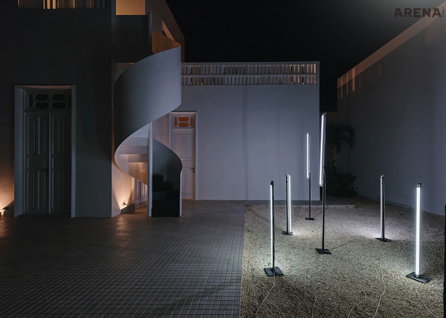나무들이 줄지어 하얀 돌담장을 속에 품고 있다. 그리고 돌담장은 필럭스 랩을 품었다. 필럭스 랩에 들어서면 커다란 야자수 한 그루가 반긴다. 이곳은 시선을 떼기 힘든 섬세한 디자인 요소들로 이루어졌다. 벽의 모서리에는 사각형 구멍들이 규칙적으로 있어 햇빛이 통과하면 반대편 벽에 기하학적인 그림자를 만든다. 벽화 같은 풍경을 그려낸다. 건물 측면에서 솟아난 곡선 계단은 지면에서부터 2층으로 가로지른다. 뒤편으로는 산책로가 있다. 작은 공간이지만 구조적으로, 또 디자인적으로 다양하게 활용했다. 유카탄반도의 전통적인 건축을 파괴하고 트인 구조로 현대적인 건축물의 형태를 갖췄다. 필럭스 랩은 ‘예술 실험실’이라고 할 수 있다. 그림이나 사진, 조형물을 전시하는 공간이 아니다. 작품의 소재는 빛이다. 높은 담장과 하얀 외벽, 천장, 계단은 빛을 사용한 예술을 실험하기에 이상적이기 때문이다. 또한 흰 벽은 새하얀 캔버스 위에 그림을 그리듯 다채로운 색감의 빛을 흡수하기에 알맞다. 1층에는 다섯 개의 방이 있으며 2층에는 빛과 관련된 서적들로 채운 작은 도서관이 마련되었다. 바닥은 앤티크한 무늬가 모자이크를 이루고 있다. 내부에는 어떠한 조명도 설치하지 않았다. 조명을 활용한 작품을 선보이는 작가들을 위한 배려다. 입맛에 맞게 빛을 쏘아 전시를 펼칠 수 있어 예술가들을 위한 무한한 가능성을 지닌 건축물이다.
