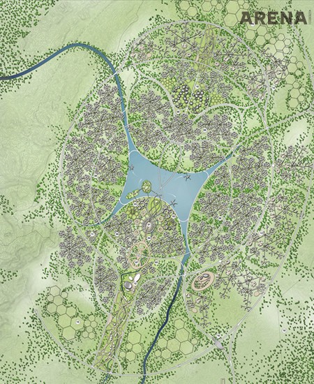 칼리만탄 열대우림은 험난한 지역이다. 인도네시아는 온통 물로 가득하다. 강물은 쉽게 범람하며, 쓰나미와 폭풍도 잦다. 해수면 상승도 우려된다. 이러한 환경에서 번성할 수 있는 장소를 확보하는 것이 도전 과제였다. 인피니티 시티가 자리할 곳은 산에 가깝다. 초목이 울창하고 언덕은 가파르다. 도로망과 보행 가능한 공간을 찾기 어려운데, 우리는 AI를 활용해 주행 가능한 도로를 선택했다. 안전하고 주행 가능하며 생태계 파괴는 최소화한 경로다.