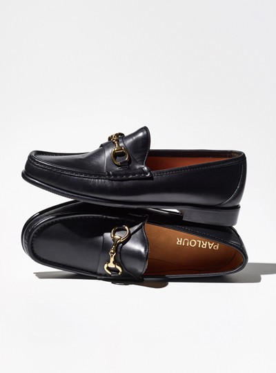 송아지 가죽 소재의 호스빗 로퍼 팔러 제품.