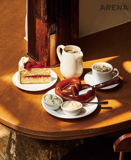 과거 정취가 물씬 풍기는 익선동 골목에 유럽이 있다. ‘하이웨스트’ 풍경이 유독 눈에 띄는 이유는 익선동 한옥마을 속에 자리했기 때문이다. 기와지붕 아래 카페 외벽은 몰딩 처리를 하고 하얀색으로 통일해 유럽 감성을 내뿜는다. 실내는 다양한 빈티지 그림과 소품들을 조화롭게 배치하고 주방을 등진 벽면에는 베이커리 재료들을 줄지어놓아 유럽 가정집처럼 연출했다. 오래된 듯한 아이보리 몰딩 스텝 바 위에는 판매 중인 케이크와 빵들이 무심한 듯 규칙적으로 플레이팅되어 있다. 하이웨스트의 자랑은 고소한 라테와 한입 먹으면 단번에 반할 ‘꾸덕한 초코 케이크’다. 하이웨스트 연남점과 달리 익선점에서만 즐길 수 있는 메뉴가 있다. “익선점에선 연남점에 없는 플렛젤 종류와 스콘 세트를 즐길 수 있어요. 스콘 세트는 플레인 스콘에 리코타 치즈와 잼을 더한 메뉴죠. 플렛젤의 속재료와 리코타 치즈, 잼 등은 모두 직접 만든 거예요.” 하이웨스트의 강관구 이사가 말했다. 이곳에서 빵을 즐기기 가장 좋은 자리는 바 테이블로 투명한 유리로 마감된 천장이 개방감을 주어 더욱 감성적인 티타임을 누릴 수 있다.