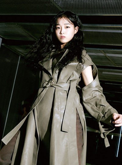 이유정 | 회색 가죽 코트는 유돈 최, 데님 팬츠는 아티코 by 매치스패션, 부츠는 코치 제품.