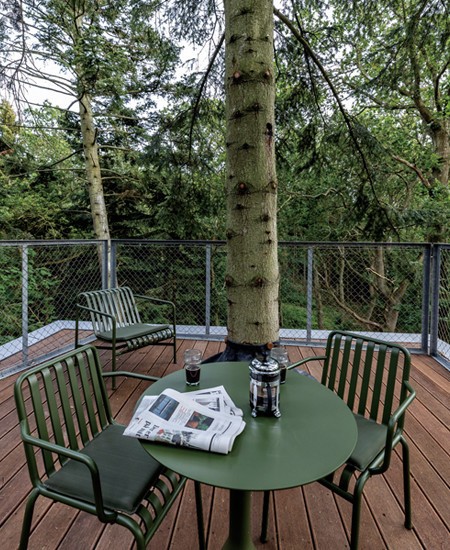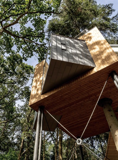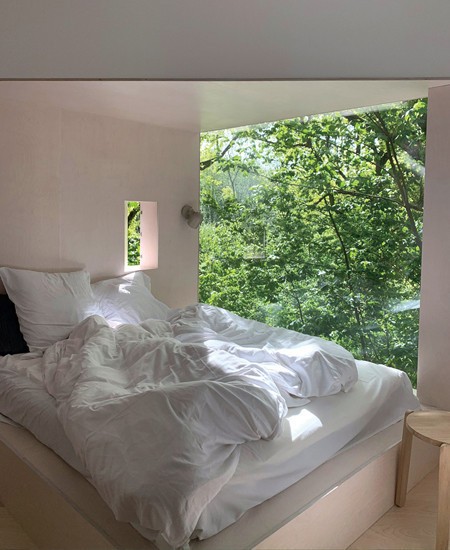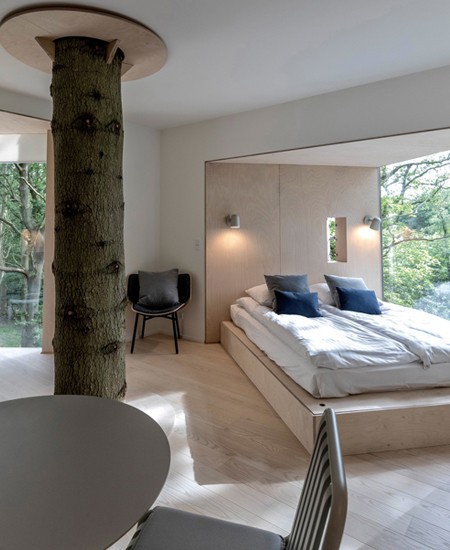 나무 위에 있는 오두막. 트리톱 호텔은 이름처럼 나무 위에 지어졌다. 정확히는 나무 중간 즈음에 걸쳐 있다. 나무가 오두막 중심을 통과한다. 트리톱 호텔은 아홉 개의 오두막으로 구성된 호텔이다. 덴마크의 아름다운 알스 오데 반도의 작고 진기한 숲에 있다. 이 숲은 낙엽수와 침엽수가 뒤섞여 자라 동화 같은 분위기를 연출한다. 지면에는 부드러운 이끼들이 자생해 푹신하고 안전한 느낌을 준다. 운이 좋다면 이 다정한 숲에 사는 사슴과 토끼, 꿩을 볼 수도 있다. 오두막은 작은 언덕 꼭대기의 높은 나무 중간에 위치해 숲을 관망하기 좋다. 오후에는 나뭇잎을 통과한 햇살들이 실내를 채운다. 실내 공간은 면적이 30㎡로 최대 네 명까지 수용 가능하다. 지붕 테라스에선 커피를 마실 수 있도록 테이블과 의자가 마련되어 있는데, 크기는 20㎡다. 지붕 테라스로 올라가는 길은 마치 나무를 타고 오르는 듯한 기분을 선사한다.