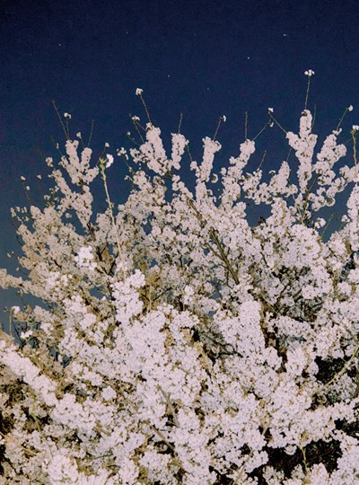 벚꽃은 밤에 더 반짝인다. 어두운 밤에는 밝은색의 벚꽃나무를 프레임 두르듯 볼 수 있기 때문이다. 밤의 액자 안에 있는 벚나무의 모습은 마치 추상적이고 초현실적인 그림처럼 보인다. 어둠 속에서 빛나는 벚꽃을 보고 있자면 다른 세상에 잠시 서 있는 듯하다. 가장 좋아하는 밤 벚꽃을 보는 장소는 산책로 정상 부근, 남산 성곽길이다. 버스정류장 근처 성곽길엔 커다랗고 아름다운 벚나무들이 서 있다. 서울의 야경도 한눈에 볼 수 있어 더욱 사랑하는 곳이다.