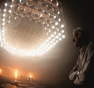 ← 모든 것은 조명의 힘 “마치 <미지와의 조우>의 한 장면 같지 않습니까? 놀랍게도, 모든 야간 사막 장면은 유니버설 스튜디오의 실내에서 촬영했습니다. 천장에 매달린 조명은 새벽녘을 연출하기 위한 것이었죠. 뒤쪽에 보이는 주황색 불빛은 후반 작업 때 유전의 화염으로 대체할 표시등이고, 앞쪽에 있는 인물이 바로 촬영 감독 로저 디킨스로, 이 조명을 고안해낸 장본인입니다.” |