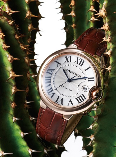 ‘파란 공’ 하면 가장 먼저 떠오르는 모델이다. 카보숑 컷 블루 사파이어로 장식한 크라운은 케이스에 담은 듯한 독특한 형태를 띠고 있다. 은은하게 빛나는 선레이 다이얼 안에 동그랗게 돌아가는 로마 숫자 인덱스, 3시 방향의 오밀조밀한 날짜 창은 ‘까르띠에’답게 우아한 매력을 자아낸다. 손목 위에 이상적인 40mm 사이즈와 새롭게 적용한 퀵스위치 시스템으로 스트랩도 간편하게 교체할 수 있다. 발롱 블루 드 까르띠에 워치 1천8백만원대 까르띠에 제품.
