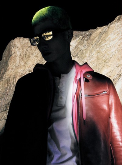 버건디색 가죽 재킷·형광 분홍색 후드 집업·헨리넥 톱 모두 가격미정 톰포드, 선글라스 가격미정 벨루티 제품.