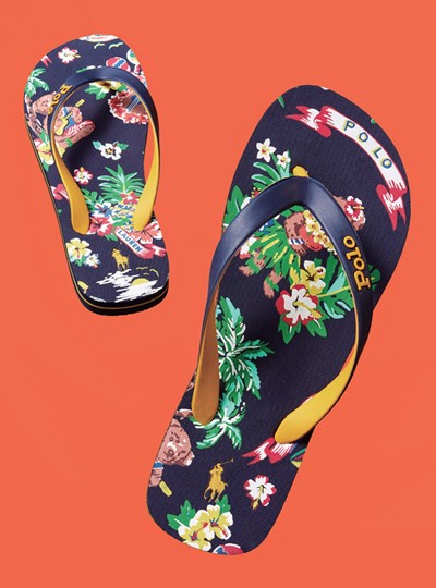 여름이면 무얼 신을까 고민하는 법이 없다. 무릎 위를 훌쩍 올라오는 짧은 반바지든, 옷장에서 제일 편한 청바지든, 치렁치렁한 흰 바지를 입어도 플립플롭만 꿰어 신으면 그만이기 때문에. 샌들이나 에스파드리유, 러버 슬라이드처럼 여름에 합당한 시원하고 멋진 신발이야 많지만 플립플롭만의 방만하고 편한 매력은 대체 불가다. 규칙 같은 건 없지만 개인적으로 가장 좋아하는 스타일은 무더운 날 셔츠 소매를 훌훌 걷어 입고 긴바지에 너끈하게 플립플롭을 신는 것. 이때 매끈한 가죽 플립플롭보다는 걸음마다 소리가 뒤따르는 말랑한 고무 소재의 플립플롭을 더 선호한다. 폴로 랄프 로렌의 볼트 플립플롭은 여름이 오기 전 미리 눈여겨본 신발이다. 신발을 벗었을 때에야 보이는 훌라춤을 추는 폴로 베어 프린트까지 마음에 쏙 든다.