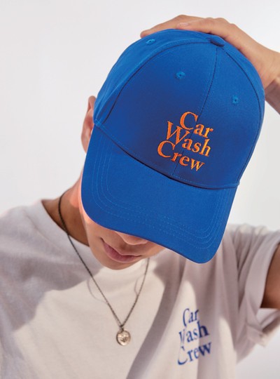 선명한 파란색 캡 3만8천원·흰색 티셔츠 3만8천원 모두 크레이지 카 워시 크루, 목걸이 에디터 소장품.
