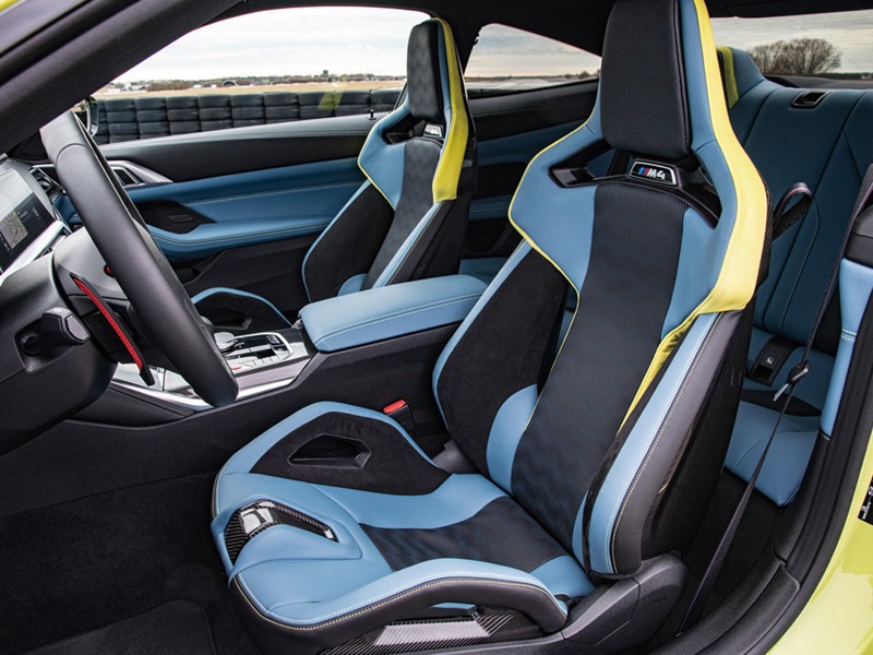 어쩔 수 없다. 역시 커다란 수직 키드니 그릴이 먼저 보인다. 익숙해지려면 시간이 필요하다. 영영 낯설게만 보일지도 모른다. 그럼에도 분명한 건 있다. 낯설기에 눈에 콕, 박힌다. 지나가면 열에 아홉은 쳐다볼 수밖에 없다. 감탄이든 경악이든, 시선을 끄는 것만으로도 영향력이 생긴다. 고성능 모델이라면 더 효과적이다. 도로에서 도드라져야 하는 모델이기에. 같은 수직 키드니 그릴이어도 M4는 느낌이 조금 다르다. 그냥 4시리즈보다 수직 키드니 그릴이 차체에 스며들었달까. 같이 놓고 보면 확연하다. 차체의 각 덕분이다. M4의 차체에 들고 난 날카로운 각은 수직 키드니 그릴의 파격과 호응한다. 그릴 폭에 맞춰 파인 보닛의 그래픽과 앞 펜더 뒤로 깊게 파인 캐릭터 라인의 과감함이라니. 그릴에 테두리가 없어 더 차체 선과 연결된다. 이제야 전체 비율이 눈에 더 잘 들어온다. 차체 비율이야 원체 4시리즈가 빼어났다. 실내 역시 과감하다. 카본으로 빚은 스포츠 버킷 시트는 본격적이고, 실내 곳곳에 적용한 색은 발랄하다. 고성능을 증명하는 장식을 넘어 감각이 파격적이랄까. 런웨이의 오트 쿠튀르처럼 전위적이다. M4의 안팎은 기존 M과 온도 차가 확실하다. 그 시작은 분명 수직 키드니 그릴이다. ★★★☆