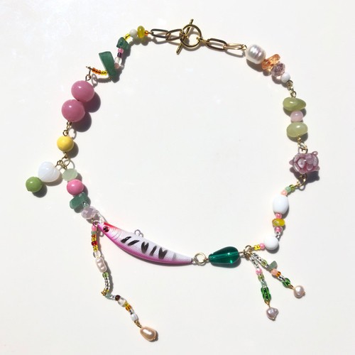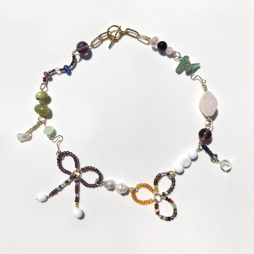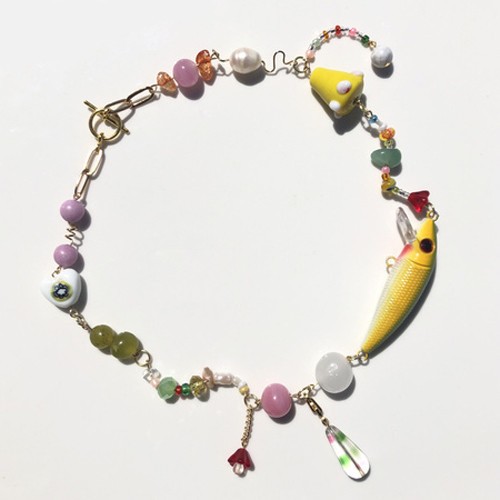 ‘빈 샐러드’가 아니라 ‘비드 샐러드’다. 직역하자면 구슬 샐러드라는 이름을 가진 이 브랜드는 보다시피 아주 다양한 재료를 토핑으로 담아 유치하고 명랑한 키 링과 커스텀 목걸이를 만든다. 미디어 아트를 전공 중인 로렌 렁 크레머(Lauren Leung Cramer)는 빈티지 비즈 원석에 루어 낚시용 미끼, 천연 담수 진주 등을 엮어 하나뿐인 재기발랄한 악세서리를 탄생시켰다. 각각 다른 목적, 장소, 물건으로부터 만들어진 재료들을 한데 엮어 요즘 세대다운 업사이클링 주얼리인 점, 그리고 가끔 과제와 시험으로 업데이트가 늦어진다는 귀여운 사정도 비드 샐러드가 재미있는 이유다.