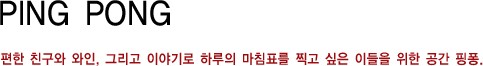 편한 친구와 와인, 그리고 이야기로 하루의 마침표를 찍고 싶은 이들을 위한 공간 핑퐁.