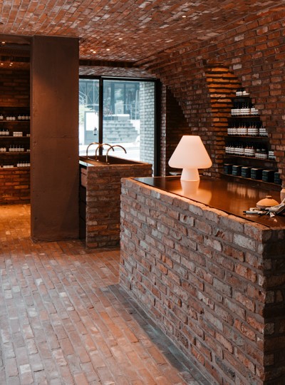 이솝의 아홉 번째 시그너처 스토어인 이솝 사운즈 한남 2층에는 다른 국내 스토어에서는 경험할 수 없는 특별한 서비스가 마련돼 있다. 피부의 균형과 집중적인 영양 공급을 위해 이솝의 방식대로 고안한 6가지 맞춤 트리트먼트인 ‘페이셜 어포인트먼트’가 바로 그것. 트리트먼트를 진행하기 전 고객의 개별적인 피부 타입과 피부 고민을 파악하기 위한 상담을 진행한 뒤, 6가지 프로그램 중 하나를 60분과 75분 코스로 선택할 수 있다. 본격적인 트리트먼트가 진행되는 공간은 피부뿐 아니라 마음과 오감까지 고려했다. 흙의 질감과 자연적인 따뜻함을 바탕으로 공간의 재질에 주의를 기울였고, 이솝만의 오묘한 아로마틱 향과 고요한 음악이 어지러운 마음까지 진정시켜 준다. 이곳에서 리드미컬하고 유려한 동작을 통해 피부 타입에 알맞은 이솝 제품과 트리트먼트 전용 제품들을 경험할 수 있다.