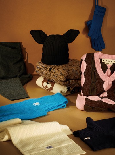 1 차콜색 니트 조거팬츠 가격미정 아르켓 제품. 2 곰돌이 패턴 스웨터 가격미정 디스퀘어드2 제품. 3 시어링 디어 디테일 비니 가격미정 버버리 제품. 4 청키한 니트 카디건 1백70만원 로에베 제품. 5 선명한 파란색 니트 장갑 가격미정 코치 제품. 6 입체적인 디테일의 브이넥 스웨터 가격미정 마르니 by 육스닷컴 제품. 7 로고 자수 장식 니트 베스트 가격미정 에트로 제품. 8 집업 터틀넥 베스트 가격미정 아르켓 제품. 9 니트 머플러 20만5천원 C.P. 컴퍼니 제품.