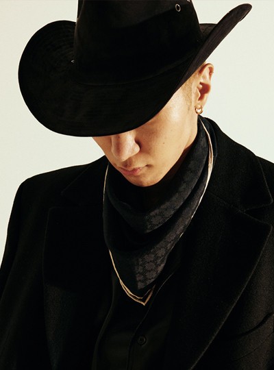 가죽 보머 재킷·레이스 넥 칼라 셔츠·팬츠 모두 가격미정 셀린느 옴므 by 에디 슬리먼, 골드 스퀘어 벨트 가격미정 돌체앤가바나, 스카프 에디터 소장품.