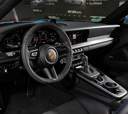 언제나 911은 포르쉐의 정수였다. 특히 911 GT3는 포르쉐 기술의 ‘엑기스’만 모은 다음 레이스 트랙 주행에 맞게 쥐어짜낸 기술들이 적용된 특별한 차량이다. 포르쉐 모터스포츠 부서와 함께 개발해 순수 레이싱 기술이 차량 전반에 적용됐다. 포르쉐에서는 신형 911 GT3가 레이스 트랙과 일상에 모두 잘 어울린다고 강조하지만, 일상에서 타기에는 부담스러운 생김새다. 공기 저항을 낮추기 위해 특별히 개발된 스완 넥 리어 윙, GT 레이스 911 RSR의 디퓨저 같은 것들은 주위 시선을 잡아끈다. 신형 911 GT3가 있어야 할 곳은 레이스 트랙이다. 레이스 트랙으로 가는 고속도로도 인정. 빠르고 과감하게 달릴 수 있는 곳이라면 어디든 오케이다. 신형 911 GT3는 이전에도 한 번 봤다. 출시 행사에서 카메라로 차량 내부를 구석구석 훑었다. 차량 곳곳에 모터스포츠 유전자가 깊이 새겨져 있었다. 헤드레스트 일체형 시트만 봐도 그렇다. 몸이 미끄러지지 않도록 붙잡아주는 알칸타라가 엉덩이와 등허리에 부착되었고, 카본섬유로 제작한 프레임은 단단하고 가볍다. 경량화를 위한 과감한 시도가 많다. 뒷좌석 시트가 없는 점, 탄소섬유 강화 플라스틱으로 제작한 보닛과 가벼운 글라스 윈도, 경량 알로이 휠 등이다. 기술이 추가되었음에도 전작과 같은 수준의 무게를 유지한다.