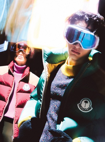 재귀반사 패딩 재킷 2백72만원·진회색 팬츠 가격미정 모두 2 몽클레르 1952, 페어 아일 스웨터·스터드 마스크 모두 가격미정 셀린느 옴므 by 에디 슬리먼, 리네아 로사 장갑 가격미정 프라다, 검은색 부츠 가격미정 몽클레르 컬렉션, 흰색 스키폴 13만원 가벨 by 래드스토어 제품.
