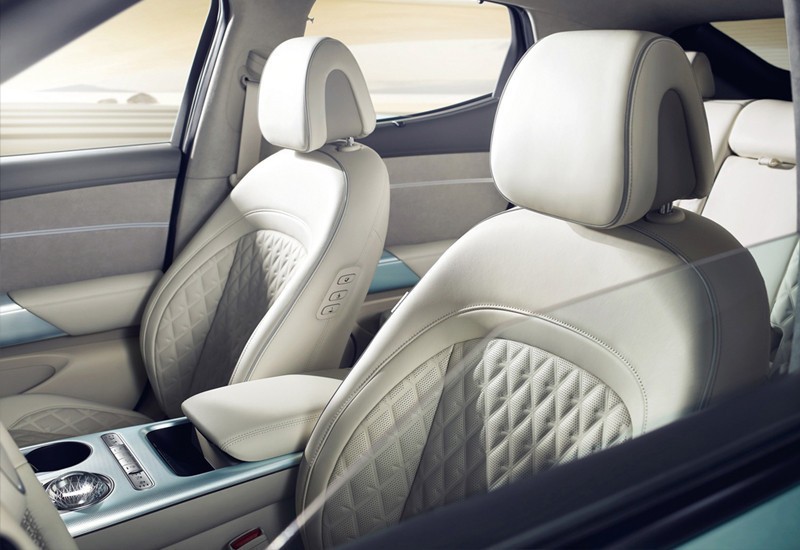 제네시스의 첫 전기차는 G80 일렉트리파이드지만 내연기관차 기반에 전기 파워트레인을 얹었다는 점에서 “태생부터 전기차다” ”진짜 전기차다”고 말하기 어려웠다. 하지만 GV60은 제네시스의 첫 번째 순수 전기차 콘셉트인 민트의 양산 버전으로 전기차 전용 플랫폼 E-GMP로 만들어졌다. 기획부터 양산까지 ‘전기차’라는 하나의 주제를 잡고 만들었다고 해도 과언이 아니다. GV60은 고성능 전기차를 표방한다. 곳곳에서 고성능과 전기차를 여실히 드러낸다. 고성능의 대표적인 예가 크레스트 그릴이다. 다른 제네시스 모델보다 옆으로 넓고 아래에 배치된 크레스트 그릴은 연소하는 데 공기가 많이 필요한 고성능차에서 가져왔다. 의도적으로 전기차임을 드러내는 요소도 있다. 쿼터글라스 부분에 있는 번개 모양의 크롬 라인인 볼트 DLO다. 보통 자동차 브랜드들은 엠블럼이나 네임 배지에 파란색이나 초록색을 가미하는 것으로 자신들의 전동화 모델을 나타내는데, 제네시스는 특이하게 크롬 라인을 사용했다. 앞으로 나올 제네시스의 전기차에서도 계속 볼 수 있을지는 알 수 없지만 차별성은 눈에 띈다. ★★★