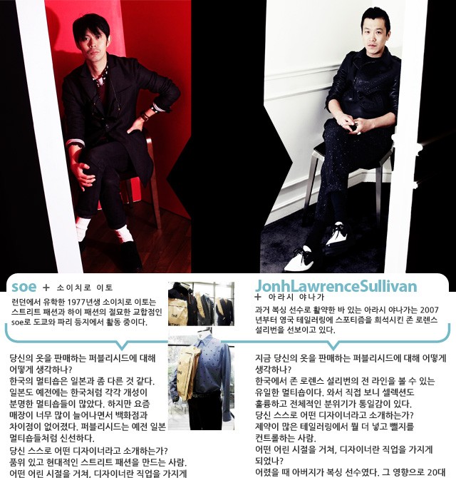 한 남자는 아버지의 영향을, 또 다른 남자는 어머니의 절대적인 영향을 받으며 자랐다. 한 명은 영국 테일러링에, 또 다른 남자는 일본 스트리트 패션에 미쳐있다. 생김새부터 말투까지 평행선처럼 공통점이 없는 이 둘은 절친한 친구이자 지금 일본을 대표하는 디자이너다. CREDIT INFOEDITOR 김민정 PHOTOGRAPHY 김린용 COOPERATION 퍼블리시드
