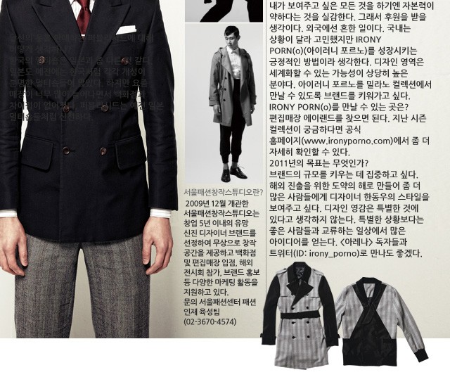 <아레나>는 믿는다. 새로운 것만이 세상을 바꿀 수 있다는 진리를. 그러므로 서울패션창작스튜디오에 둥지를 튼 이들이 바로 한국 패션의 미래를 바꿀 수 있을 것이다. CREDIT INFOGUEST EDITOR 신정인 PHOTOGRAPHY 김린용