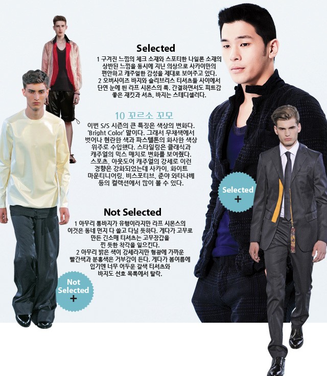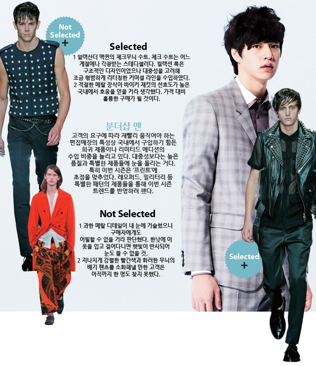 매의 눈을 가진 집단, 바이어들의 눈으로 S/S 트렌드를 바라보았다. 왜 수입했고 왜 하지 않았는지 그들의 설명을 들으면 이번 시즌 옷장에 무엇을 집어넣어야 할지 감이 잡힐 거다. CREDIT INFOEDITOR 정소영 PHOTOGRAPHY 박종수 MODEL 김태환,김봉만,도상우,박성준,박재근,백철민,안철웅,조민호 HAIR&MAKE-UP 김원숙 ASSISTANT 이동진