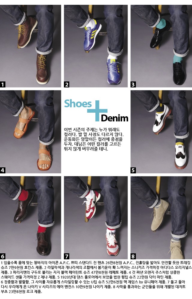 이전 기사보기 다음 기사보기 Shoes+Denim 글자크기 설정 가 가 기사의 본문 내용은 이 글자크기로 변경됩니다. 스크롤 이동 상태바 미분류기사 Shoes+Denim 입력 2011.03.08 23:35 댓글 0 글자크기 설정 가 가 기사의 본문 내용은 이 글자크기로 변경됩니다. 이번 시즌의 주제는 누가 뭐래도 컬러다. 발 밑 사정도 다르지 않다. 운동화든 양말이든 컬러에 중점을 두자. 데님은 어떤 컬러를 고르든 튀지 않게 버무려줄 테니. 이 기사를 공유합니다 키워드 #데님 #컬러 저작권자 © 아레나옴므플러스 무단전재 및 재배포, AI학습 및 활용 금지