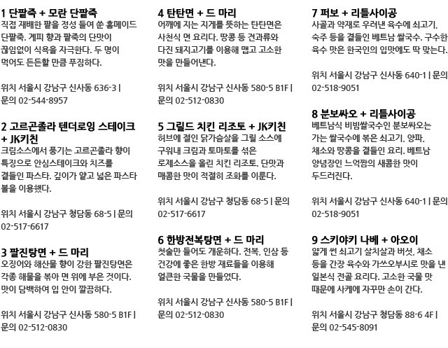 이전 기사보기 다음 기사보기 슈퍼 볼 열전 글자크기 설정 가 가 기사의 본문 내용은 이 글자크기로 변경됩니다. 스크롤 이동 상태바 LIFE 슈퍼 볼 열전 입력 2011.03.10 00:54 댓글 0 글자크기 설정 가 가 기사의 본문 내용은 이 글자크기로 변경됩니다. 더도 덜도 말고 국 요리만 같아라. 속 깊은 요리들이 뱃속도 채워주는 법. CREDIT INFOGUEST EDITOR 조진혁 PHOTOGRAPHY 최재학 이 기사를 공유합니다 키워드 #요리 저작권자 © 아레나옴므플러스 무단전재 및 재배포, AI학습 및 활용 금지