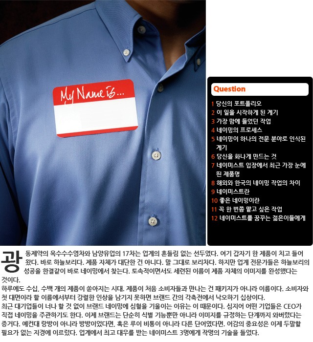 기업이나 제품의 브랜드 네임은 대체 누가 짓는 걸까. 어떤 과정을 통해 짓는 걸까. 이름 짓는 장인, 네이미스트라 불리는 세 사람을 만났다. CREDIT INFOEDITOR 이기원