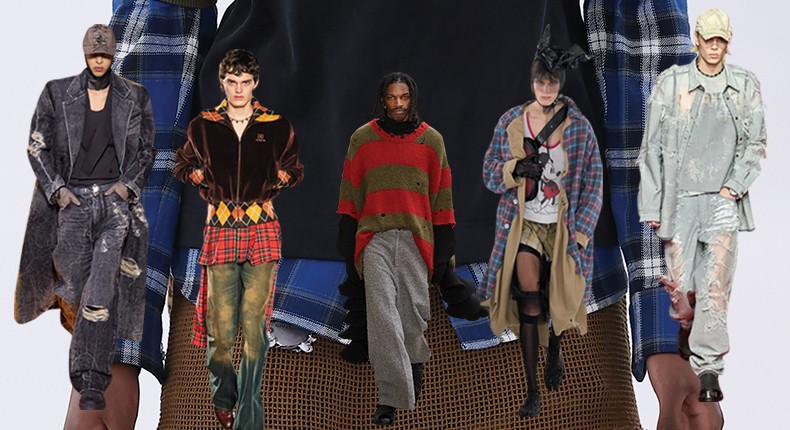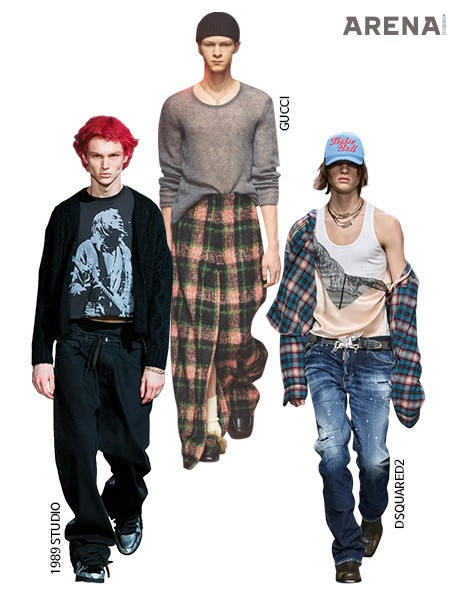 나의 바람대로 그런지 룩은 이전보다 더 흥미로운 방식으로 전개되고 있다. 지방시는 길이와 소재, 패턴이 모두 다른 옷들을 머리부터 발끝까지 레이어링해 그런지코어의 핵심을 파고들었다. 또한 구찌에서는 성글게 늘어진 니트와 기다란 체크 스커트를 매치해 성별의 경계를 허문 룩을 선보였다. 특유의 섹슈얼한 요소를 더한 디스퀘어드2는 실키한 레이스 슬립 톱과 플란넬 체크 셔츠를 매치한 룩을 완성했으며, 마르지엘라는 늘어진 미키마우스 티셔츠에 체크 쇼츠와 라텍스 쇼츠를 겹쳐 입은 후, 헤드피스를 씌워 전위적인 느낌을 더했다. 이 밖에도 에곤랩, 디젤, 루이 비통 등의 브랜드에서 과거의 전형을 그대로 유지하거나 현대적인 변형으로 새롭게 완성한 다채로운 그런지 룩을 만날 수 있었다.