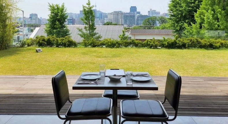 주말의 여유로운 브런치 모임으로 PKM 가든을 추천하는 이유는 햇살이 쏟아지는 넓은 마당 그리고 식사 후 1층에서 전시를 즐길 수 있는 코스가 완벽하기 때문.