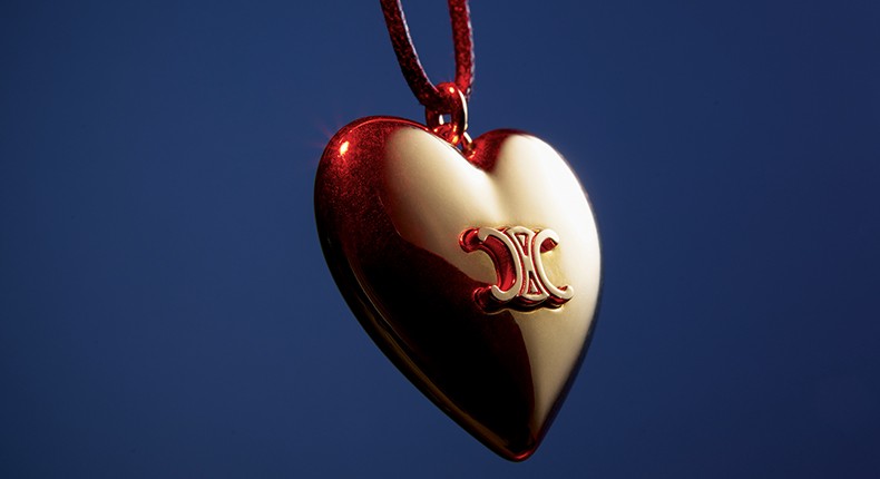 양각의 로고 장식 골드 메달 하트 네크리스 가격미정 셀린느 by 에디 슬리먼 제품.