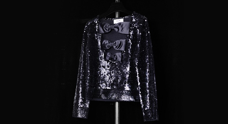 리본 디테일의 시퀸 장식 톱 가격미정 셀린느 옴므 제품.