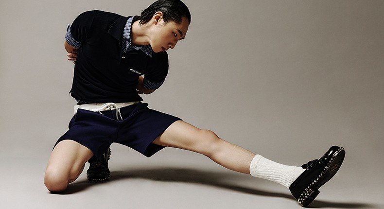 체크 패턴 셔츠·피케 폴로셔츠·쇼츠·브리프 모두 가격미정 미우미우, 스터드 장식 페니 로퍼 가격미정 루이 비통 제품.