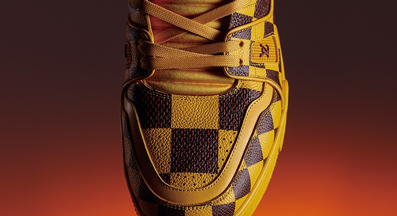 빈티지 농구화에서 영감받은 다미에 팝 패턴 프린팅 LV 트레이너 스니커즈 가격미정 루이 비통 제품.