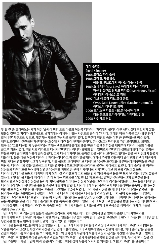 이전 기사보기 다음 기사보기 에디가 가야 할 곳 글자크기 설정 가 가 기사의 본문 내용은 이 글자크기로 변경됩니다. 스크롤 이동 상태바 미분류기사 에디가 가야 할 곳 입력 2011.05.03 14:45 댓글 0 글자크기 설정 가 가 기사의 본문 내용은 이 글자크기로 변경됩니다. 현재 크리에이티브 디렉터 공석은 많고, 에디 슬리먼은 다시 디자이너로 돌아가고 싶다 공언했다. 그의 발걸음이 향하는 곳, 폭풍의 핵이 될 것은 뻔하다. 이 기사를 공유합니다 키워드 #디자이너 저작권자 © 아레나옴므플러스 무단전재 및 재배포, AI학습 및 활용 금지