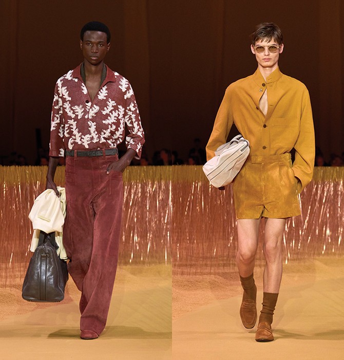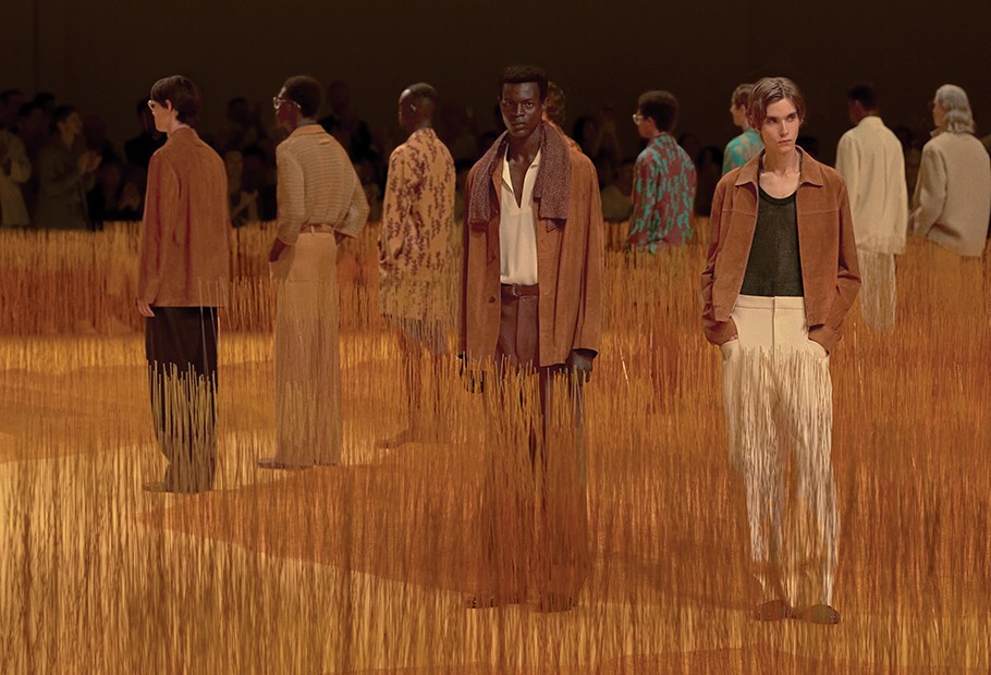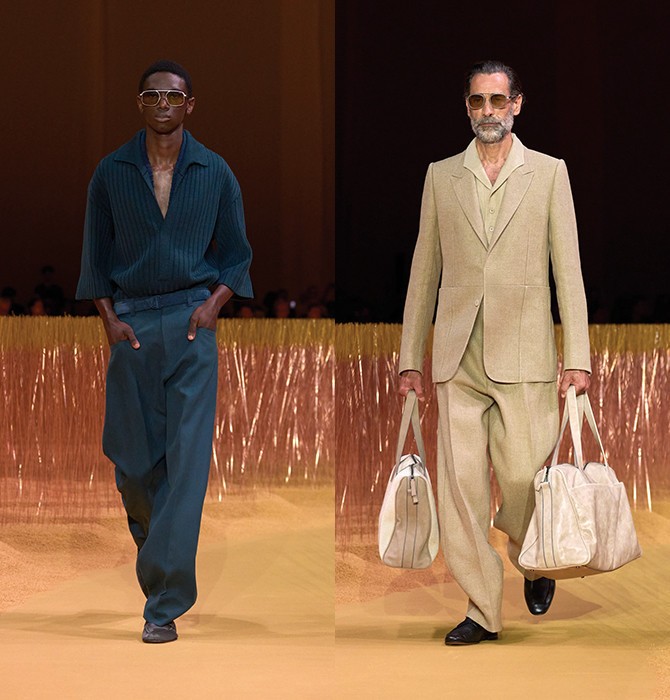 이제껏 제냐에서 보기 드물던 짧은 쇼츠, 비비드한 포인트 컬러를 활용해 추상적으로 표현한 보태니컬 오아시 모티브 프린트는 생동감을 주며 신선한 감각을 불러일으켰다. 아이코닉한 일 콘테(Il Conte) 재킷은 얇게 가공한 가죽 재킷, 리넨 아우터, 슬리브리스 스타일 등 여느 시즌보다 다채롭게 펼쳐졌다. 모든 룩에 방점을 찍은 새로운 로퍼 ‘모카신’도 주목할 만하다. 납작하고 앞코가 긴 형태로, 제냐의 주력 모델인 트리플 스티치 스니커즈와는 또 다른 새로운 매력을 선보였다.