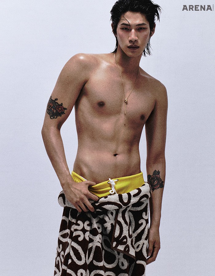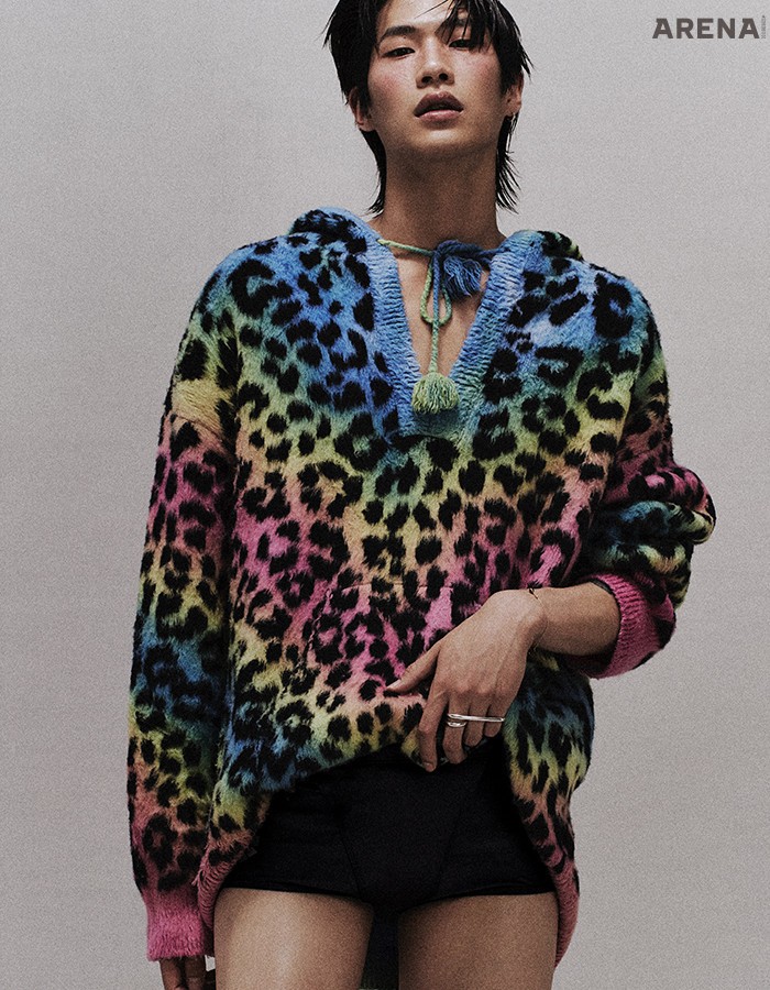 앵커 체인에서 영감받은 실버 소재의 쉔 당크르 펑크 링 가격미정 에르메스, 레드 카닐리언 볼과 다이아몬드를 세팅한 18K 핑크 골드 소재의 포제션 브레이슬릿 250만원·18K 핑크 골드 소재에 다이아몬드를 세팅한 심플한 디자인의 포제션 싱글 이어링 300만원 모두 피아제 제품. 태슬 장식의 레오퍼드 패턴 후드 티셔츠 가격미정 셀린느 옴므, 검은색 수영복 가격미정 아레나 제품.