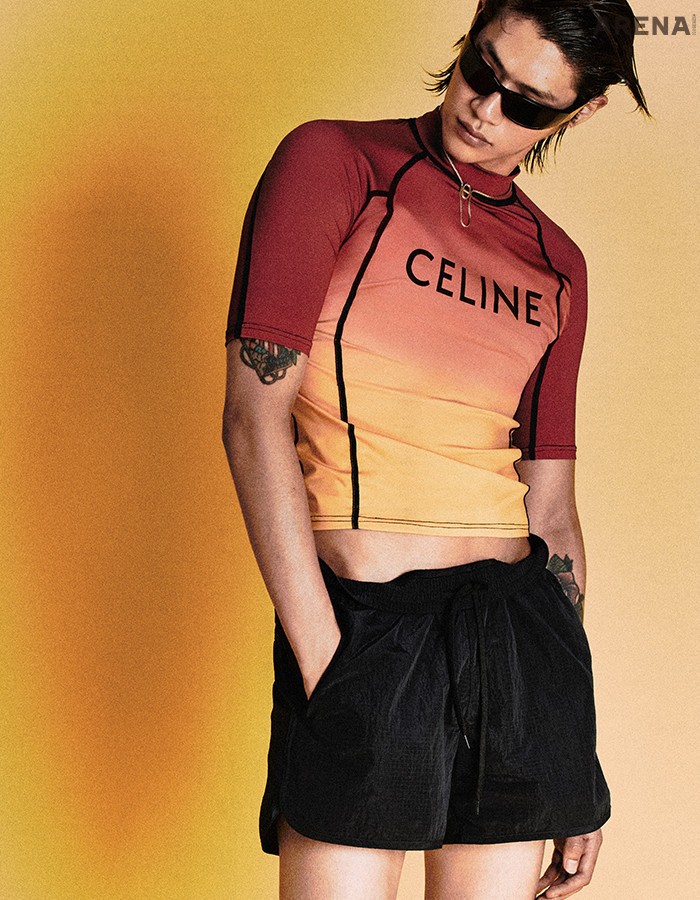 유연한 곡선 실루엣이 돋보이는 쉔 당크르 다나에 네크리스 가격미정 에르메스 제품. 그러데이션 저지 티셔츠 가격미정 셀린느 옴므, 검은색 스윔 쇼츠 8만9000원 코스, 선글라스 65만4000원 프라다 by 에실로룩소티카 제품.