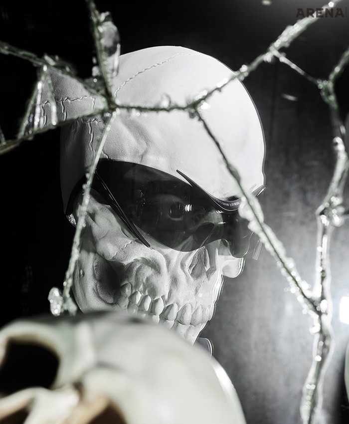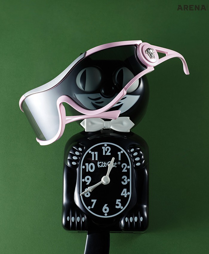 메두사 엠블럼이 돋보이는 랩 실드 선글라스 53만5000원 베르사체 제품.