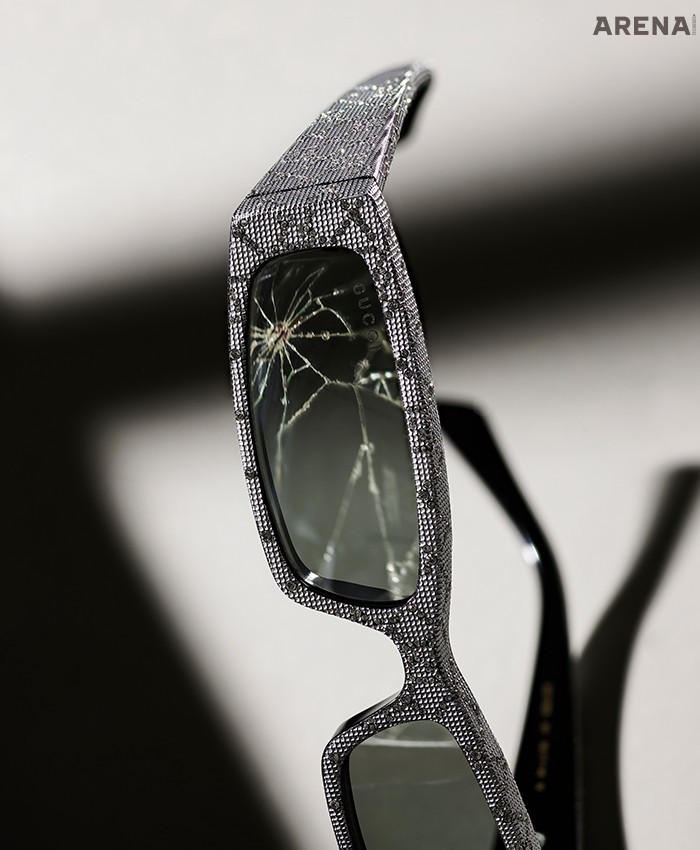 크리스털 장식의 직사각형 프레임 선글라스 211만원 구찌 제품.