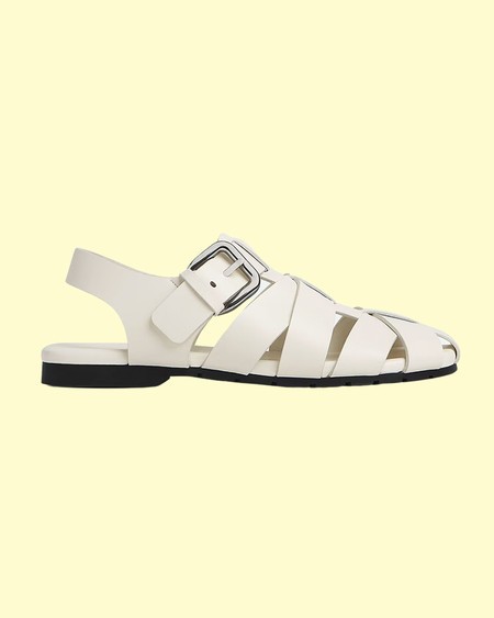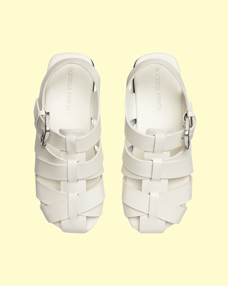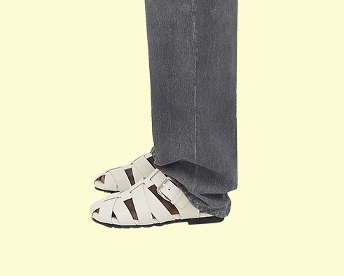 신발 끈을 묶는 듯한 위빙 디테일은 역시 가죽 장인 ‘보테가 베네타’의 샌들답다. 마찰이 자주 일어나는 가죽의 겉감은 내구성이 우수한 송아지 가죽을 사용했고 실질적인 피부와 접촉이 일어나는 안감은 염소 가죽으로 부드러운 착용감이 일품이다. 순백의 가죽 색감 또한 다양한 스타일에 활용 가능하다.