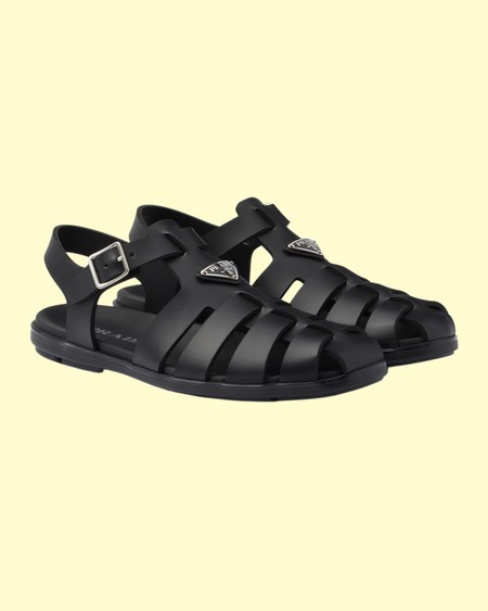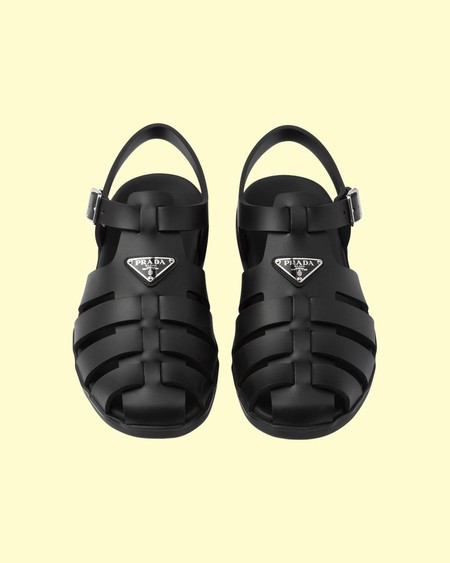 레트로한 감성에 현대적인 디테일을 가미한 매력적인 샌들. 브랜드 컬렉션의 아이코닉 한 트라이앵글 로고는 발등 위에 넣어 고급스러운 무드를 살렸다. 무엇보다 가죽처럼 보이는 실제 소재는 러버 소재를 사용해 관리적인 측면에서도 수월하다. 비가 내리는 날씨에도 부담 없이 착용할 수 있고.