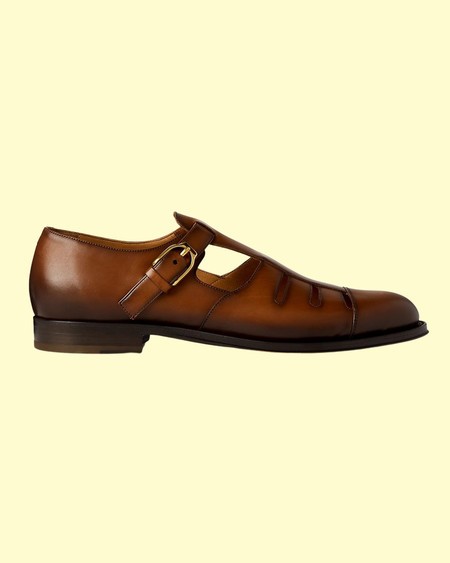 브랜드의 고급 컬렉션 라인인 ‘퍼플 라벨’에서 내놓은 ‘피셔맨 샌들’이다. 브랜드 특유의 감성은 챙기되 유행을 타지 않은 실루엣과 디자인, 이탈리아에서 엄선한 가죽을 사용해 풍부하고 입체적인 색감이 특징이다. 발등 부위의 ‘뱀프’쪽에는 ‘브라스 스터럽’ 버클을 적용해 클래식한 멋과 함께 안정적인 착화감을 제공한다.