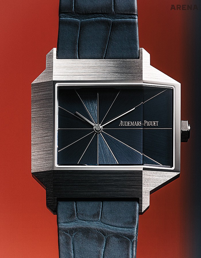 [리]마스터 컬렉션은 각 시대를 대표하는 매뉴팩처의 발자취를 좇으며, 진귀한 시계들을 재해석해 새로운 생명을 부여하고 있다. 비대칭과 다면의 아름다움이 신선하게 다가오는 이 시계는 1960년대에 출시된 5159BA 모델에 대한 헌사다. 날것 그대로의 형태, 본연의 결을 살리는 것이 특징인 브루탈리즘 사조를 기반으로 완성한 오리지널 모델에서 확연히 커진 크기만큼 직선적인 윤곽과 대비의 날을 세웠다. 18캐럿 골드 합금 소재인 샌드 골드 케이스는 빛과 움직임에 따라 화이트 골드부터 핑크 골드로 변주한다. 다이얼과 악어가죽 스트랩은 블루 뉘, 뉘아주 50 컬러로 통일했다.