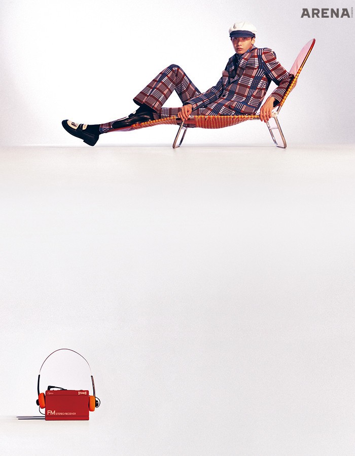 체크 재킷·스트라이프 셔츠·플레어팬츠 모두 가격미정 마르니, LV 댄디 로퍼 가격미정 루이 비통, 캡틴 해트 가격미정 폴로 랄프 로렌 제품.